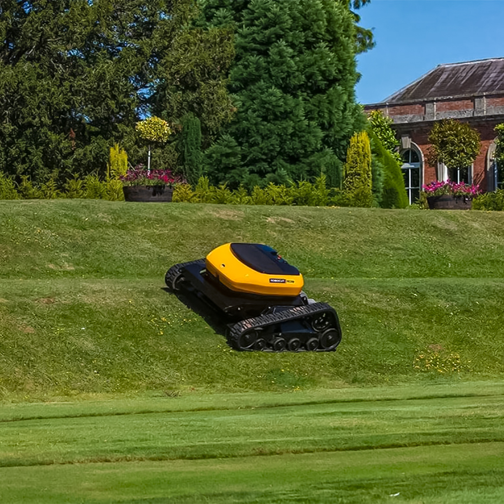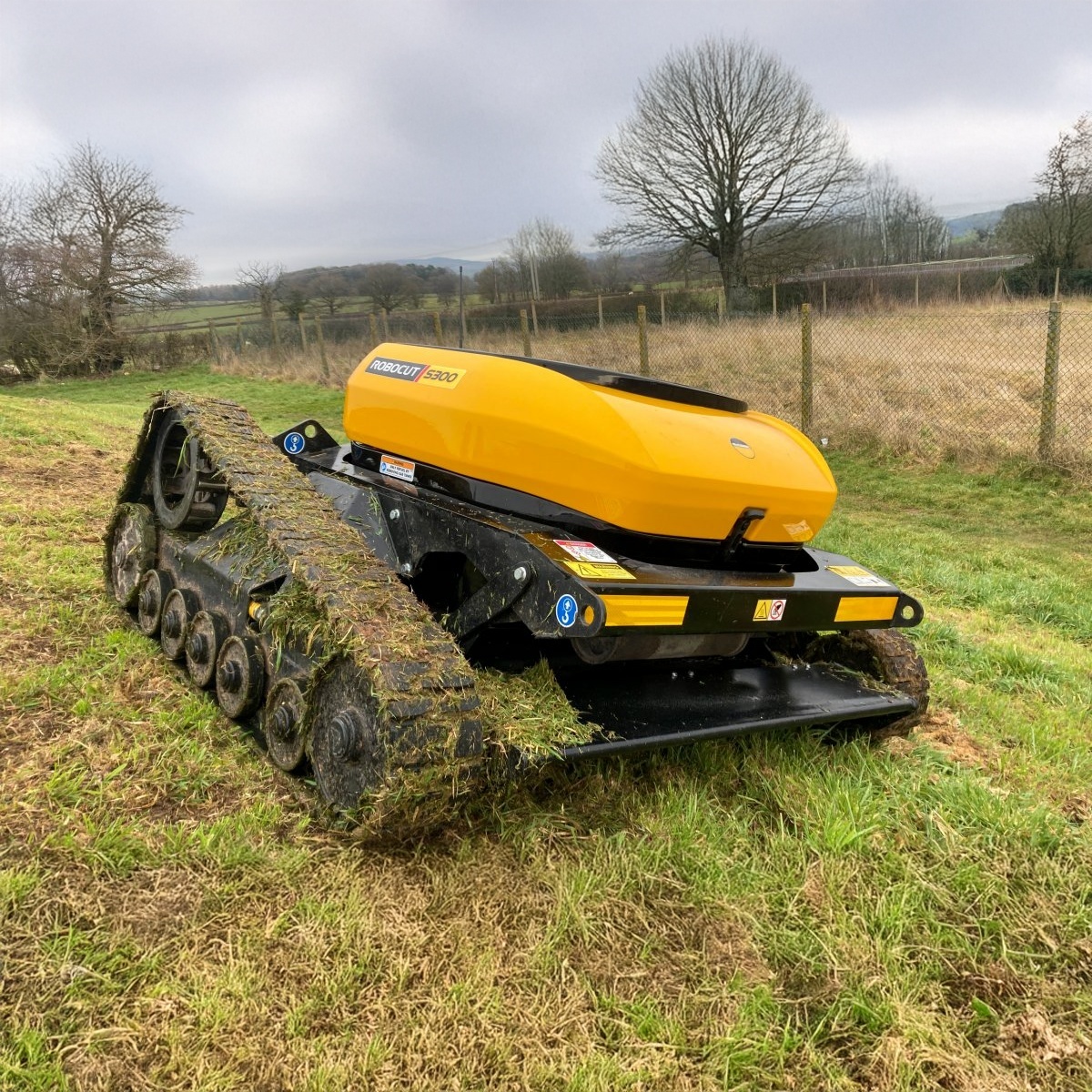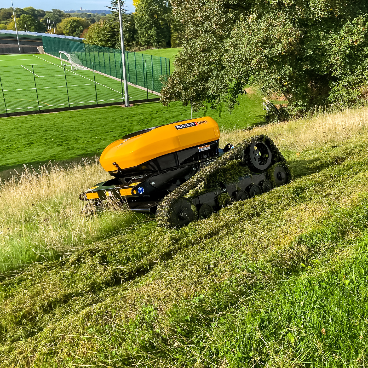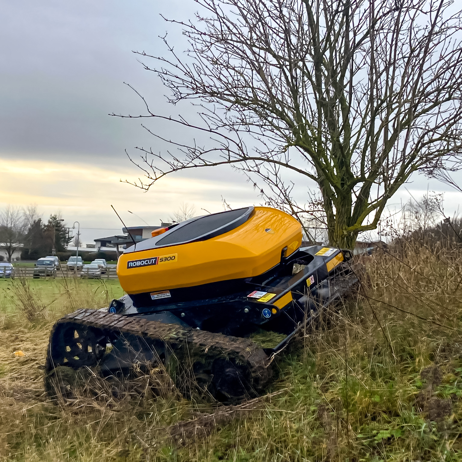 El Robocut S300 es una desbrozadora robotizada de combustión con una innovadora transmisión híbrida-eléctrica, que combina un motor Vanguard de 810 cc y 28 CV de potencia con una conducción suave y precisa. Está diseñada para ofrecer bajo consumo de combustible y emisiones reducidas sin sacrificar eficiencia. Totalmente operable a distancia, destaca por su excelente rendimiento incluso en terrenos inclinados y de difícil acceso.