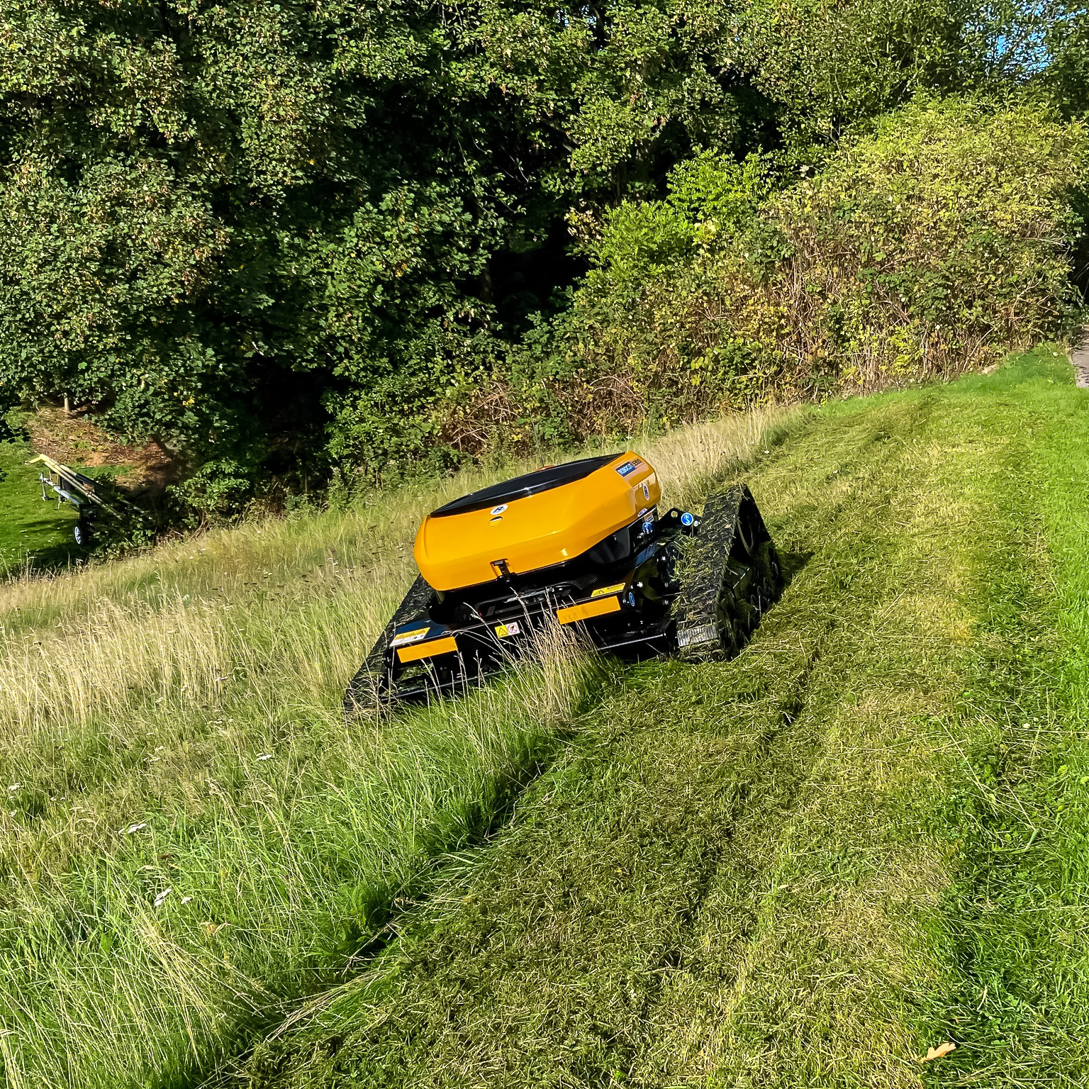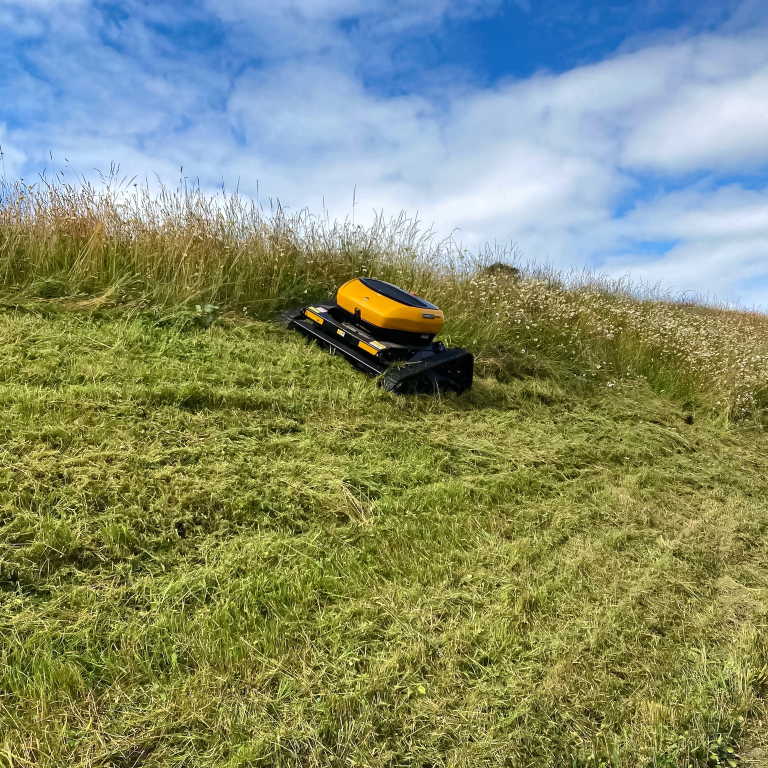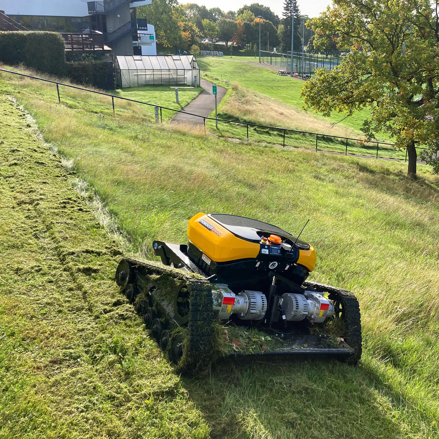 Taludes y terrenos peligrosos: ideal para trabajos donde la presencia física del operario sería riesgosa, preservando su seguridad con control remoto.