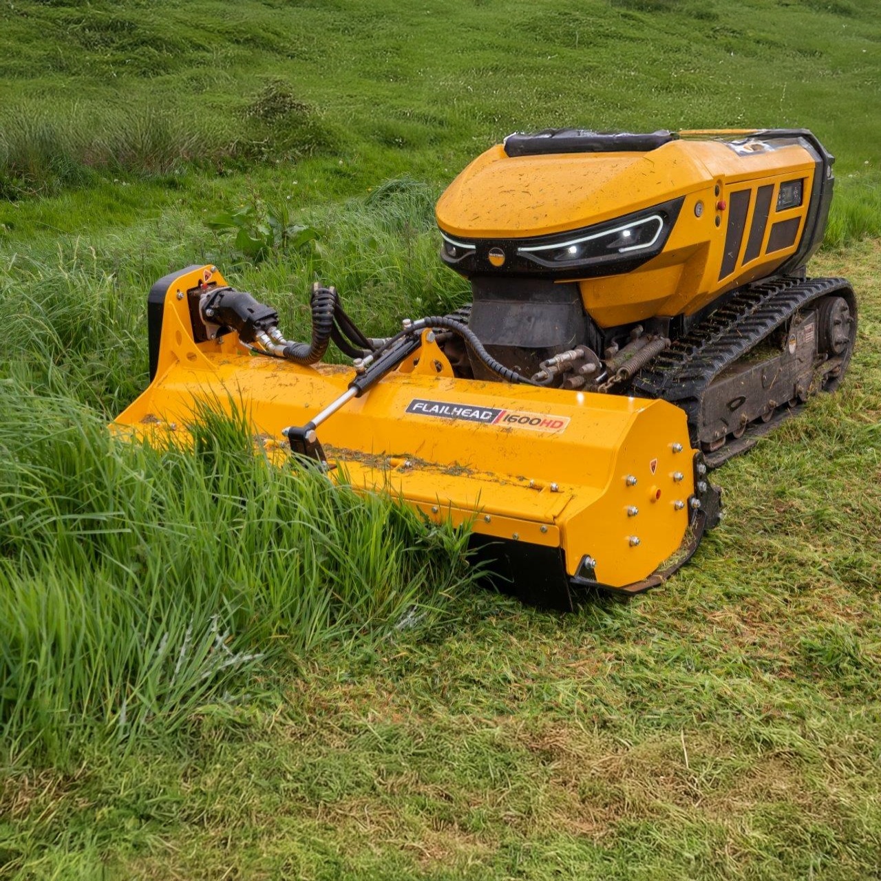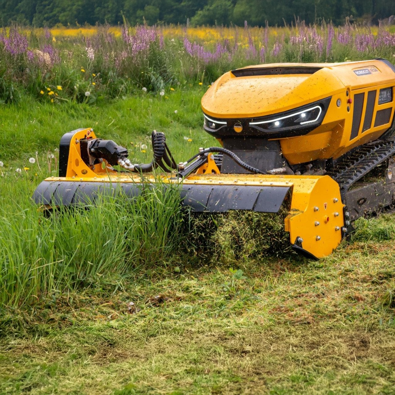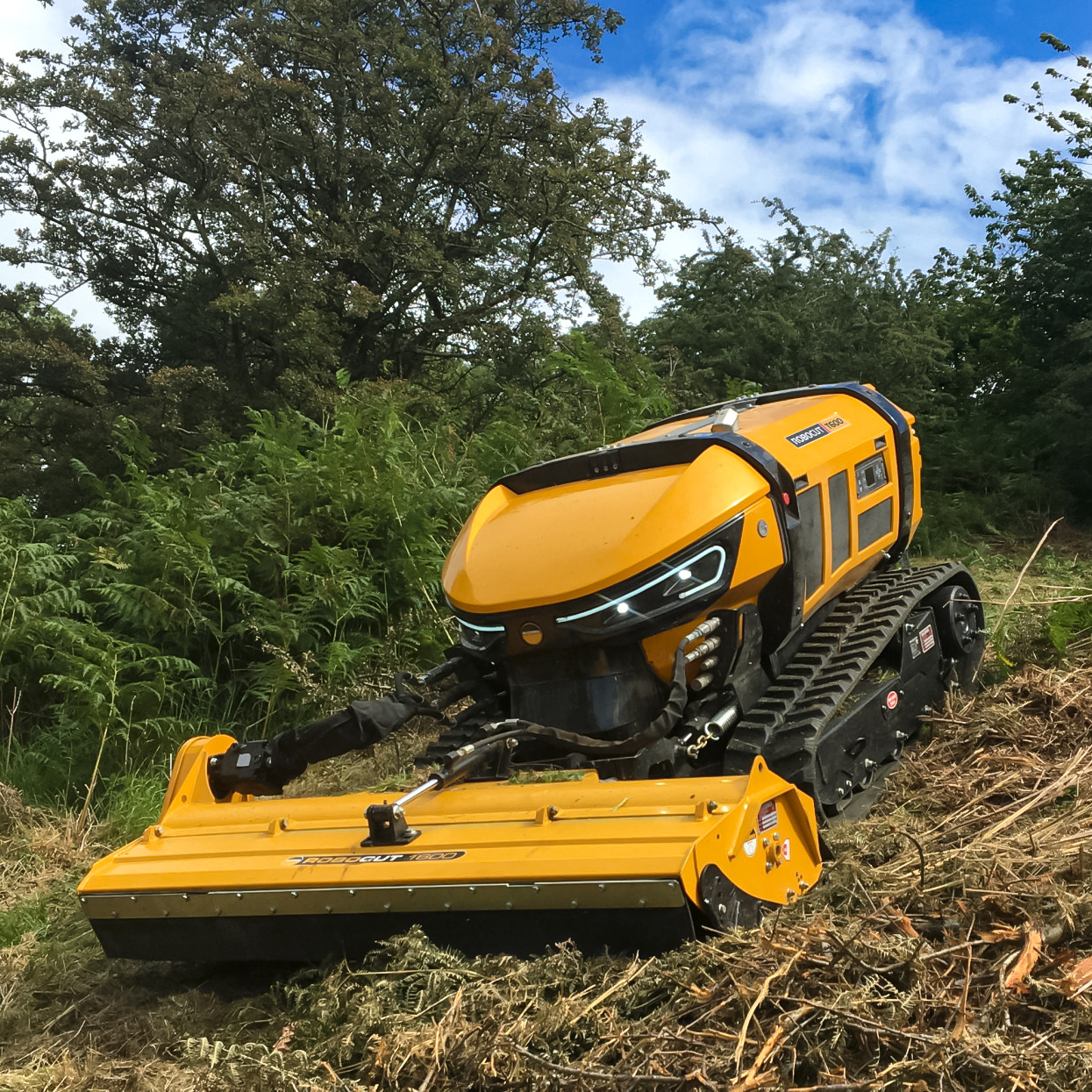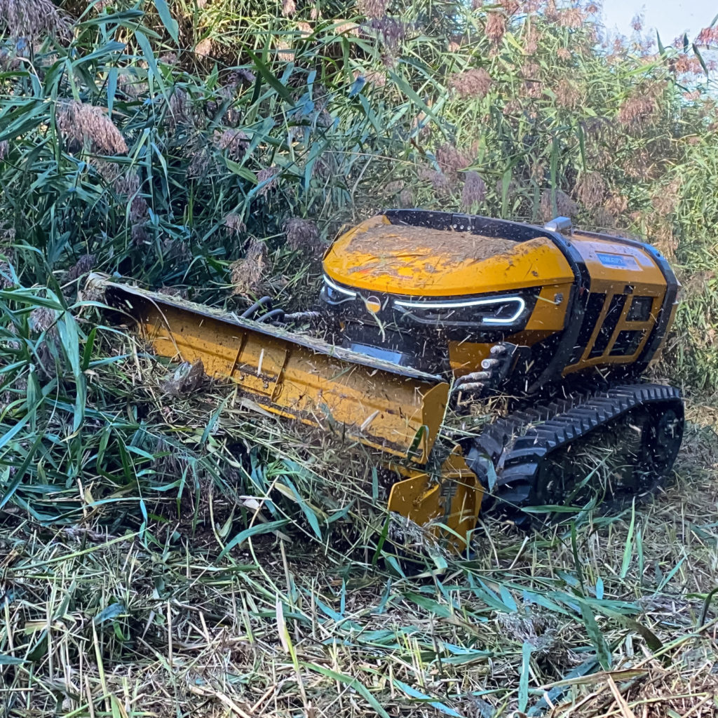 El Robocut T600 es un robot desbrozador de control remoto diseñado para afrontar los trabajos más exigentes en terrenos inclinados y de difícil acceso. Equipado con un potente motor diésel HATZ de 60 CV, combina fuerza, precisión y eficiencia, permitiendo cortar vegetación densa y ramas de hasta 50 mm de diámetro. Su estructura robusta y estable le permite operar de forma segura en pendientes de hasta 55°, mientras que el control remoto de hasta 150 m mantiene al operador fuera de zonas de riesgo. Ideal para mantenimiento de carreteras, ferrocarriles, zonas forestales y cualquier aplicación donde se requiera potencia, seguridad y productividad.