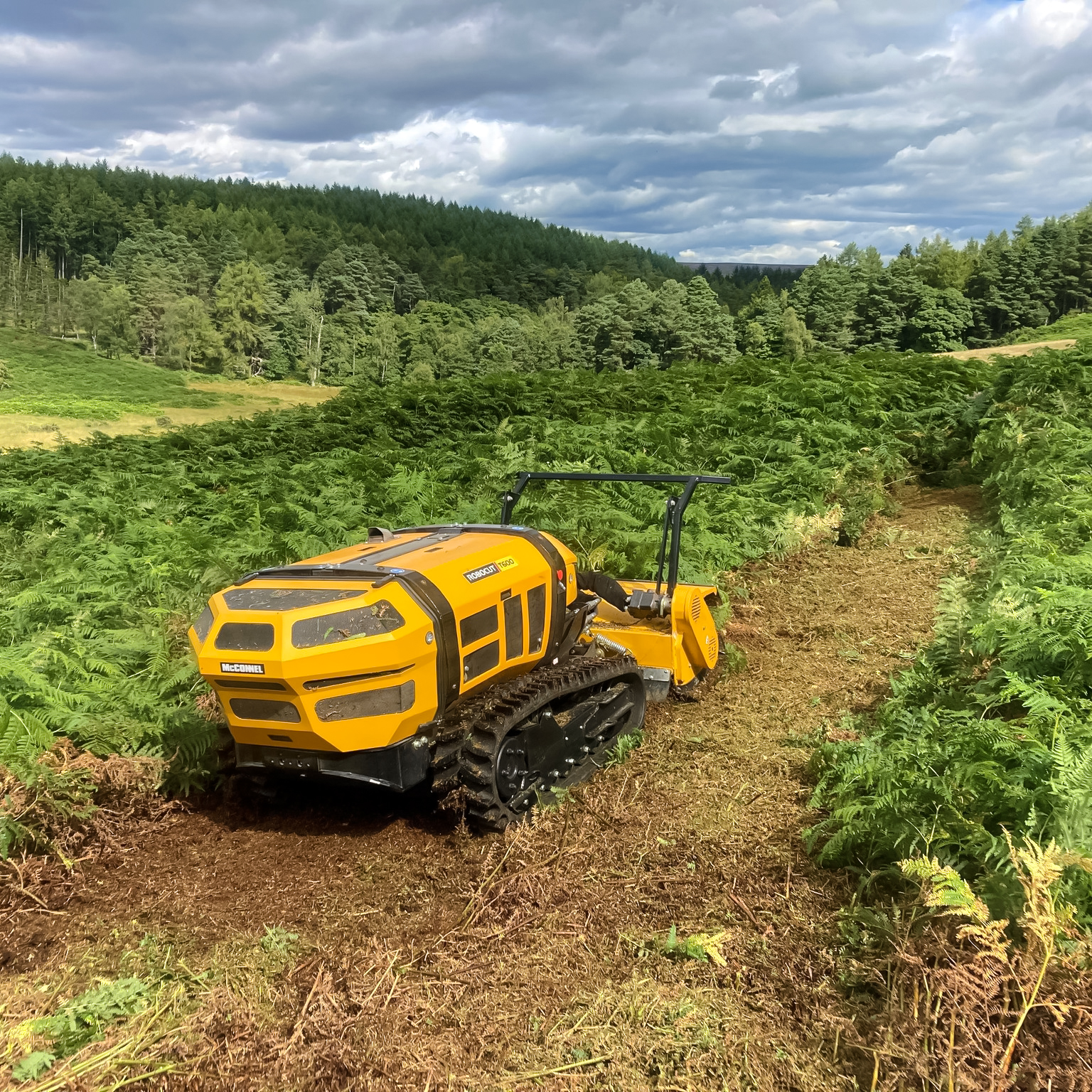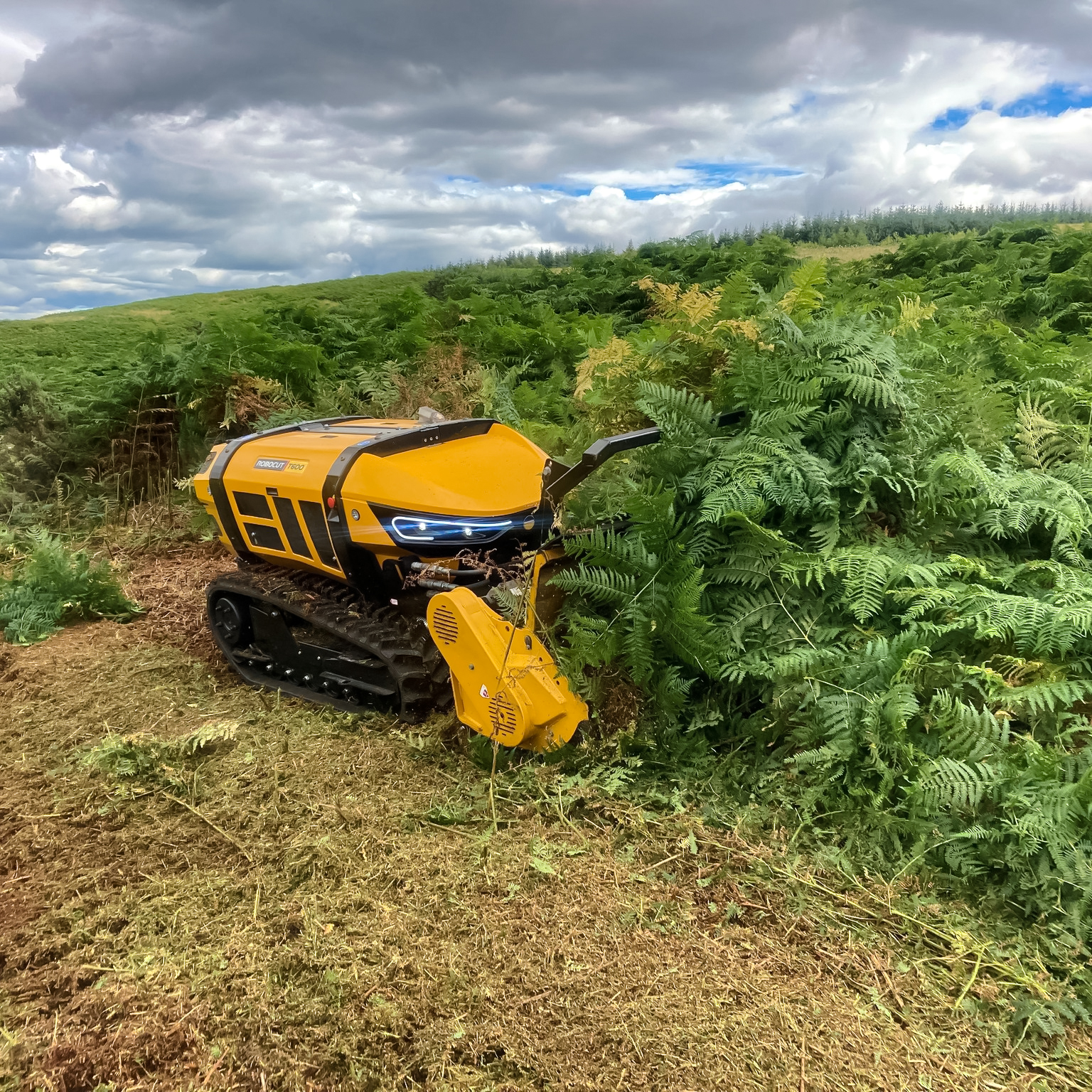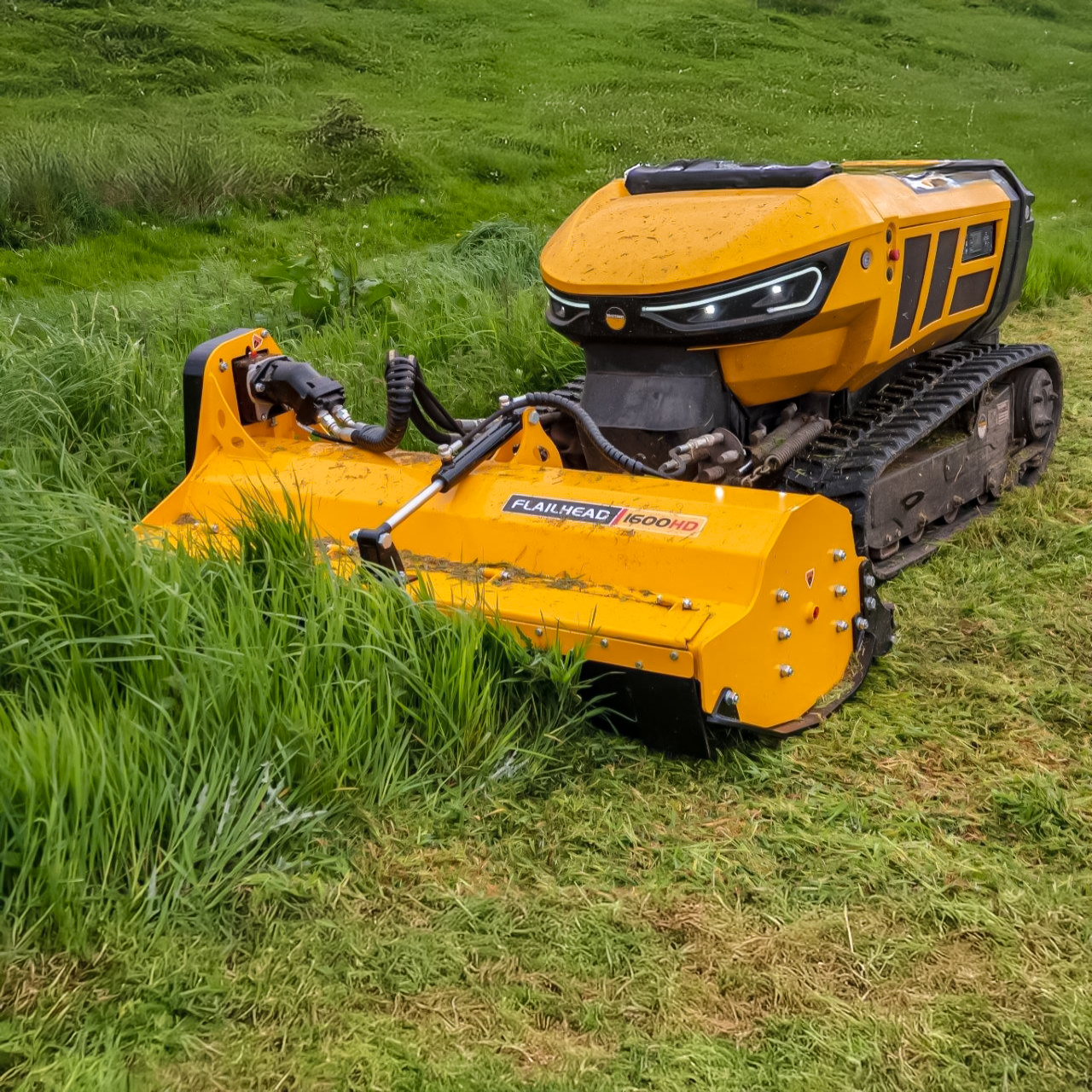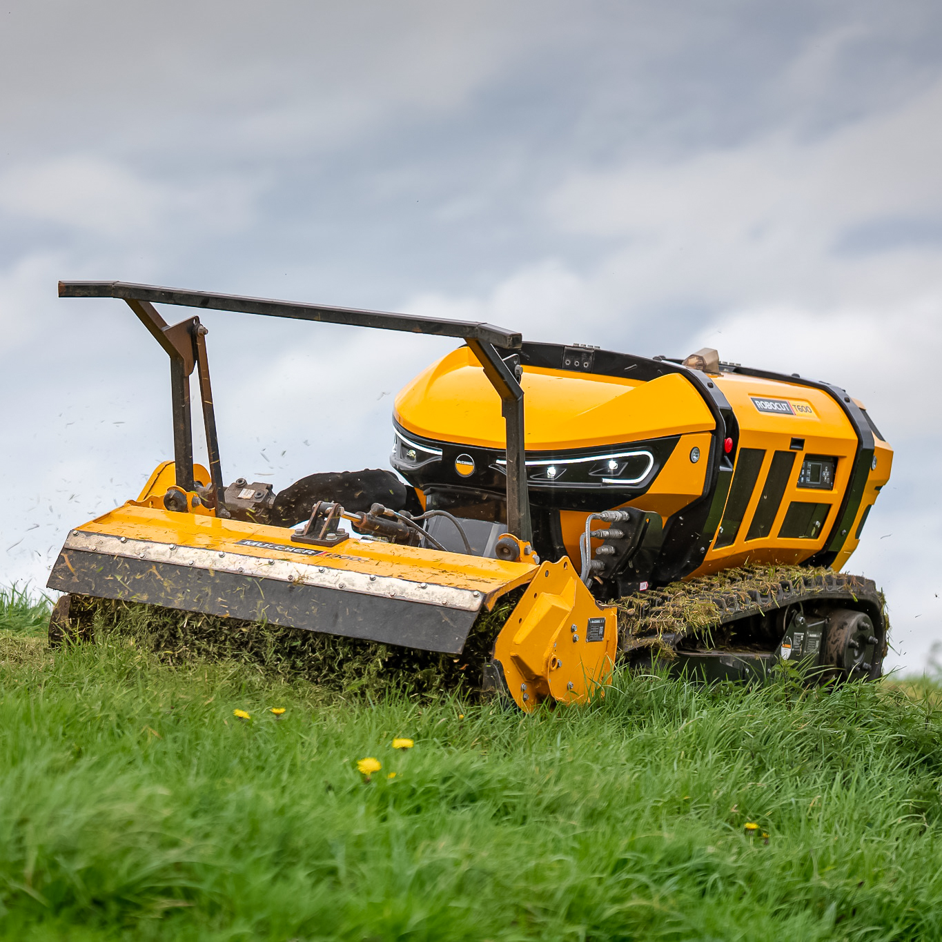 El Robocut T600 es un robot desbrozador de control remoto diseñado para afrontar los trabajos más exigentes en terrenos inclinados y de difícil acceso. Equipado con un potente motor diésel HATZ de 60 CV, combina fuerza, precisión y eficiencia, permitiendo cortar vegetación densa y ramas de hasta 50 mm de diámetro. Su estructura robusta y estable le permite operar de forma segura en pendientes de hasta 55°, mientras que el control remoto de hasta 150 m mantiene al operador fuera de zonas de riesgo. Ideal para mantenimiento de carreteras, ferrocarriles, zonas forestales y cualquier aplicación donde se requiera potencia, seguridad y productividad.