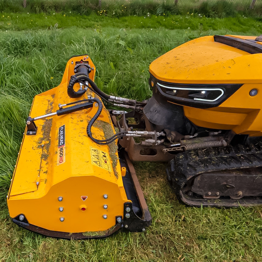 Sistema de corte: Cabezal de mulching con rotor de 1,3 – 1,9 m, ideal para vegetación densa y ramas de hasta 50 mm.
