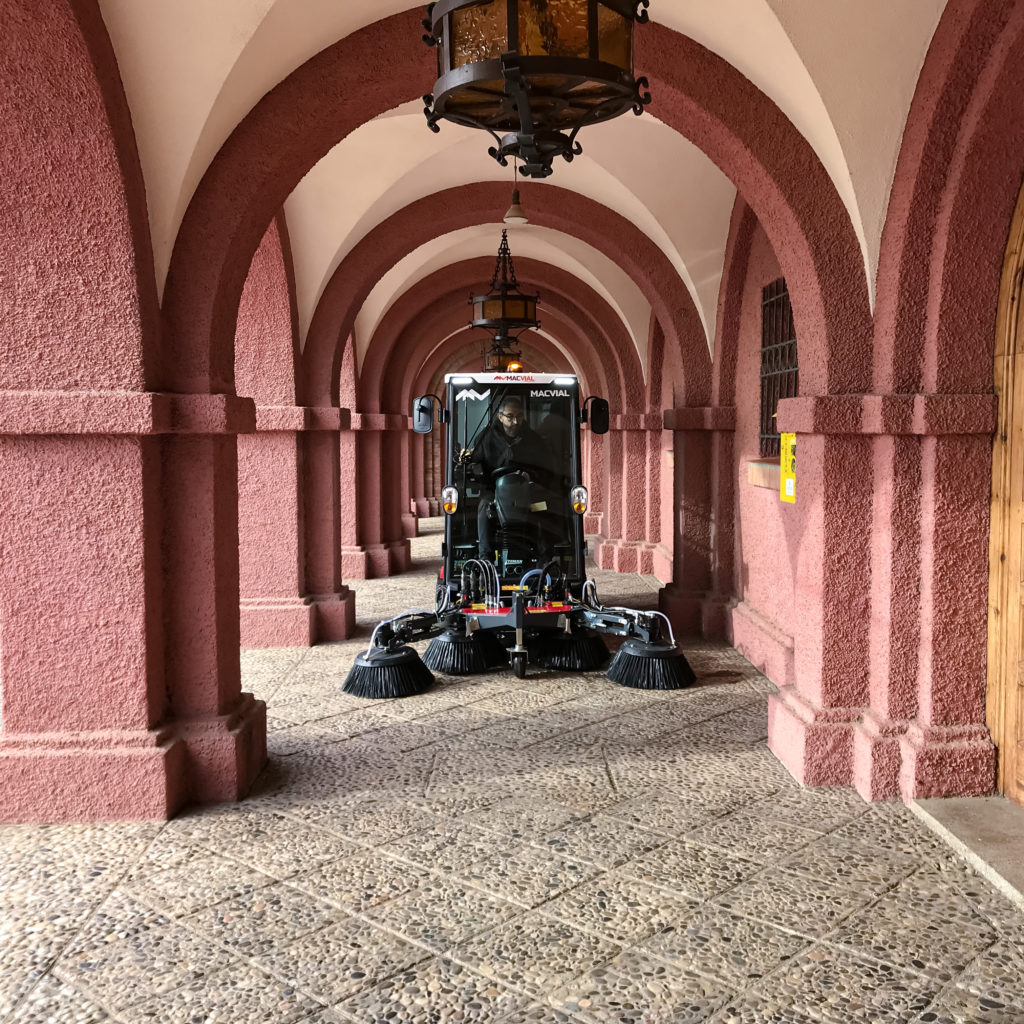 Esta potente barredora puede utilizarse durante todo el año para la limpieza de exteriores, incluyendo aceras, caminos estrechos en parques y grandes superficies como carreteras y aparcamientos.